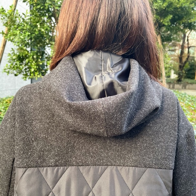 異素材ミックスのフード付きアウター。