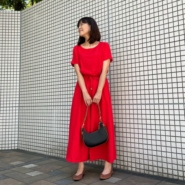 鮮やかレッドのワンピース
