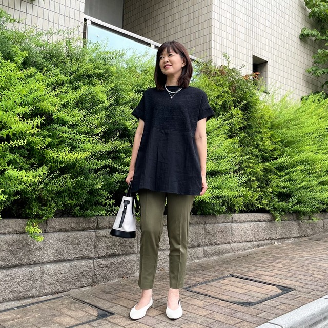 ちょっぴりハイネック風の衿で首周りをカバー。