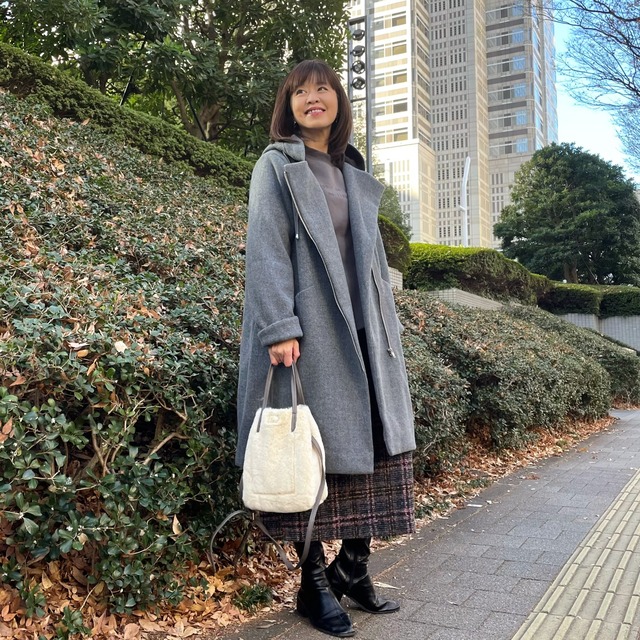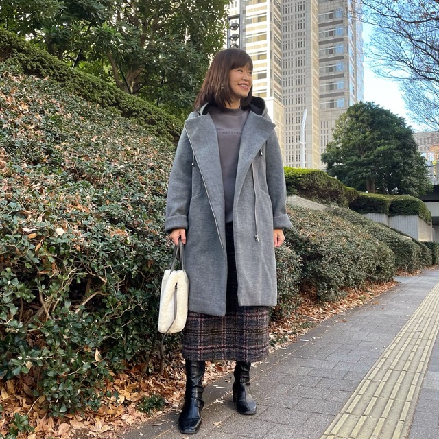 *フェイクウールのロングコートなので、ある程度重量感はあります*